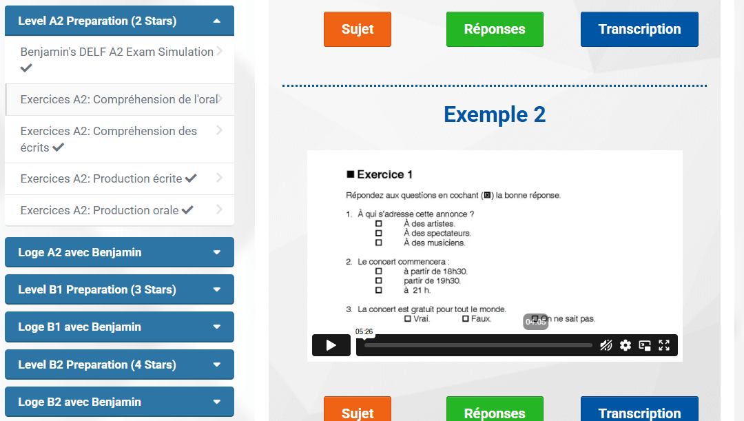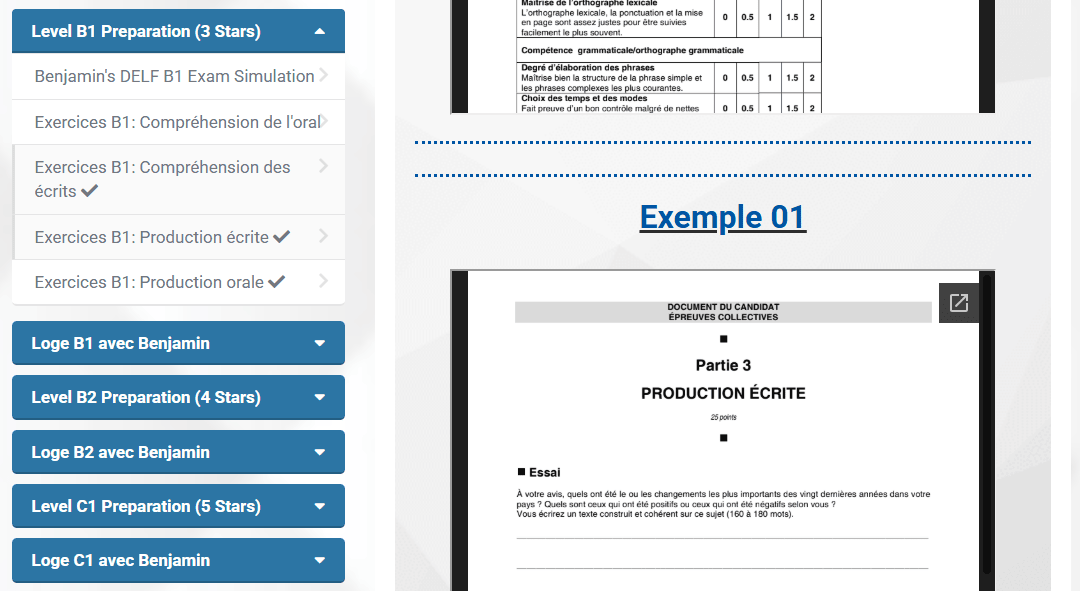 Click your level to discover everything you need to pass your DELF exam: structure, expectations, and guided training.